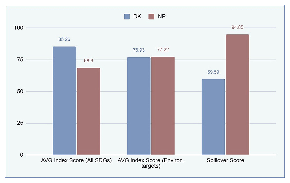 Nonetheless, the foundational data obtained from overall average SDG index scores are confirmatory of the immense cultural differences between the 2 nations, with the inner validation of the spillover score, denoting that NP has significantly more positive effects upon other nations, with DK’s shortcomings patent in a lower 0.5959 score.