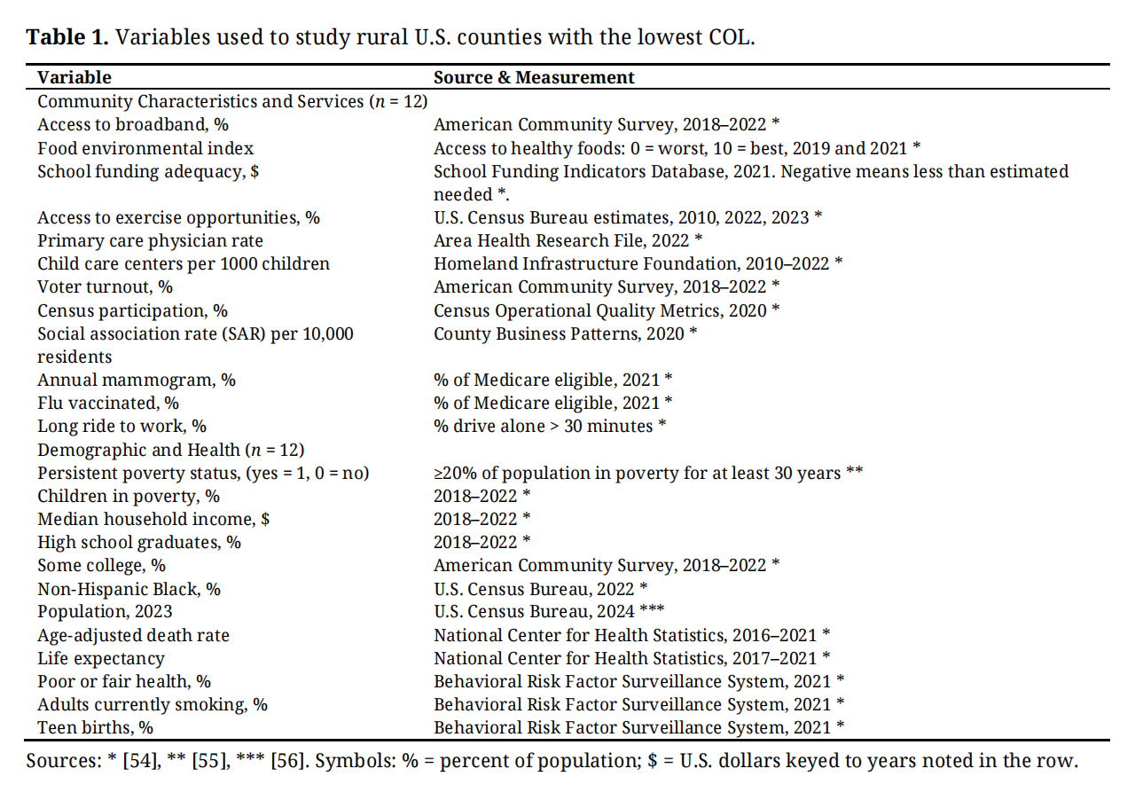 Table 1. Variables used to study rural U.S. counties with the lowest COL.