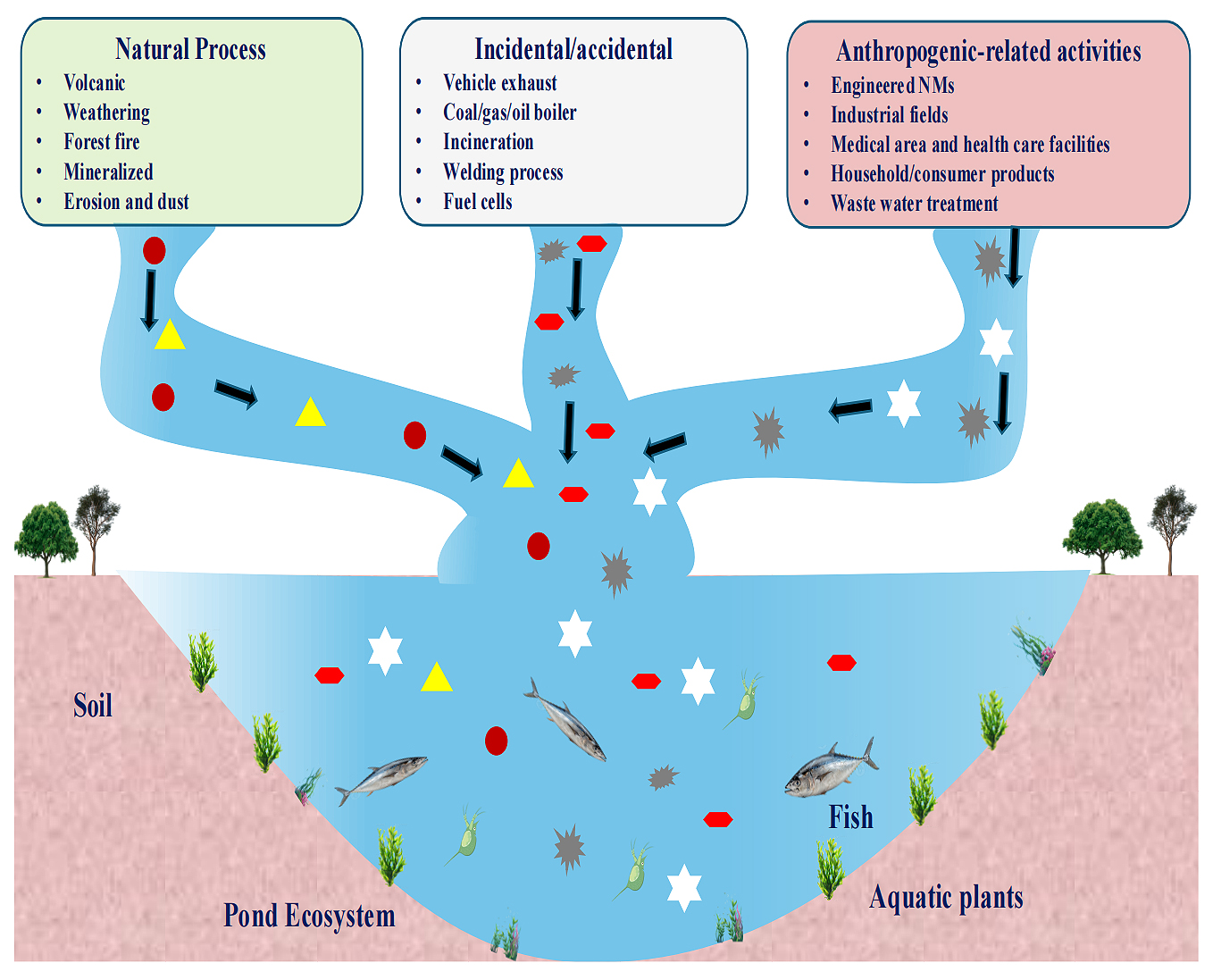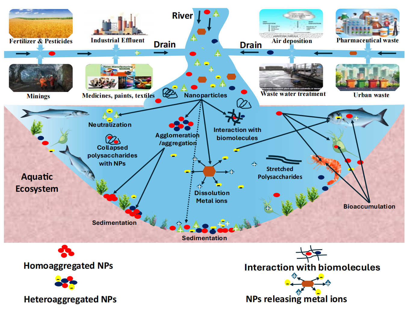 Figure 3. Sources of NP release and their interactions in aquatic ecosystem.