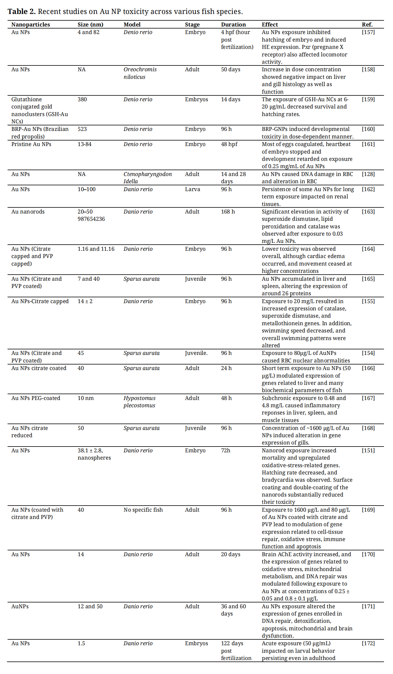 Table 2. Recent studies on Au NP toxicity across various fish species.