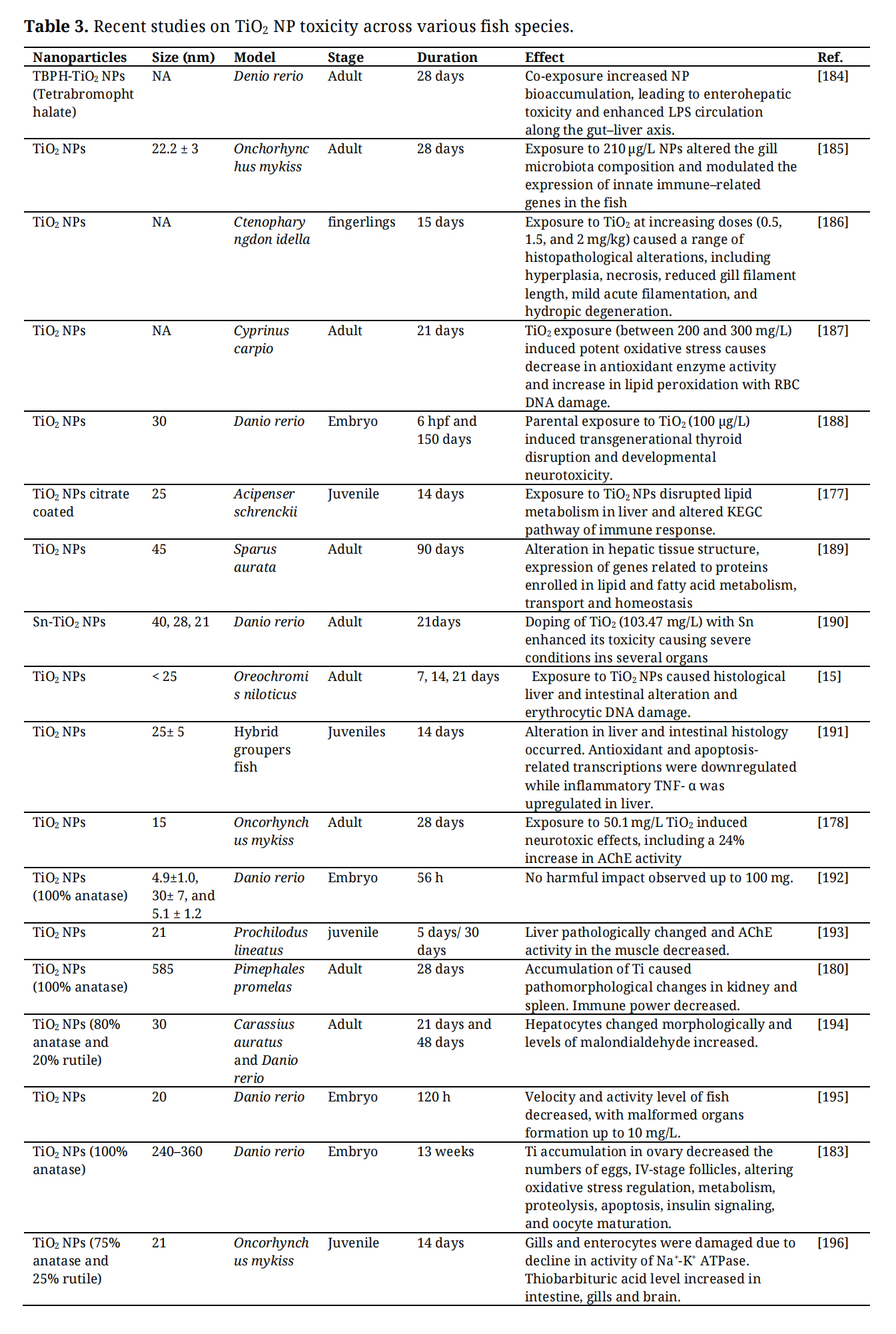 Table 3. Recent studies on TiO2 NP toxicity across various fish species.