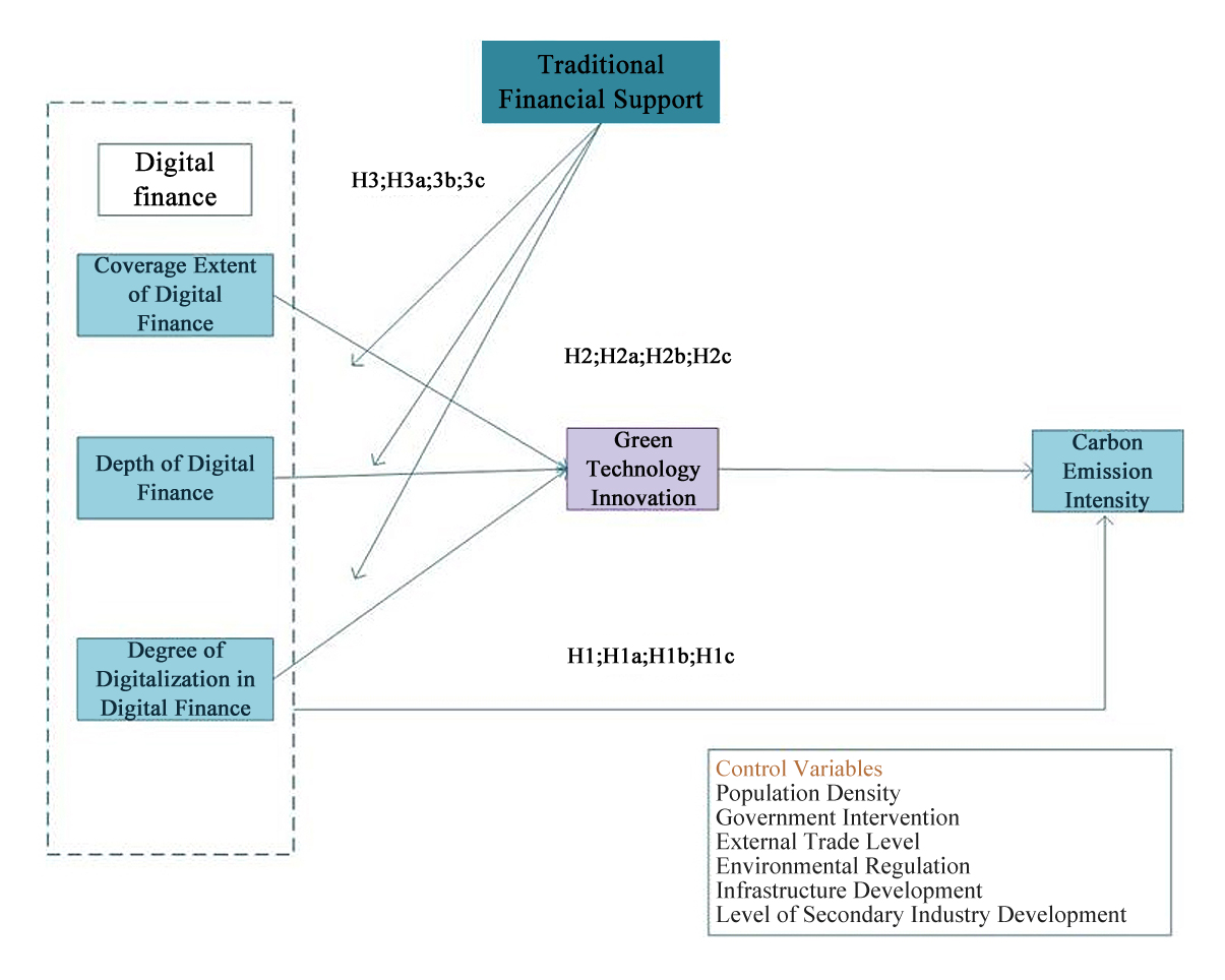 H1c: Degree of digitalization in digital finance is negatively correlated with carbon emission intensity.