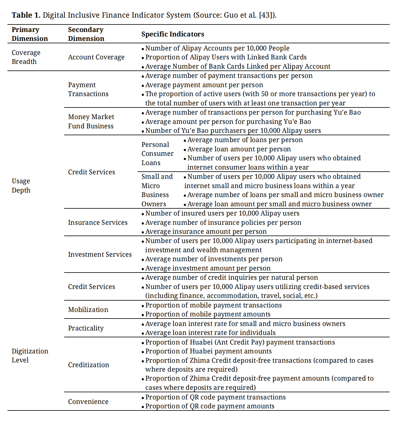Table 1. Digital Inclusive Finance Indicator System (Source: Guo et al. [43]).