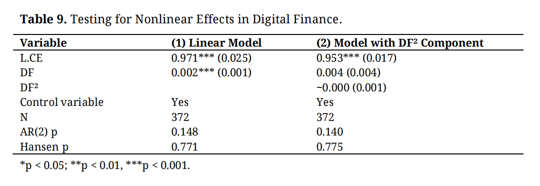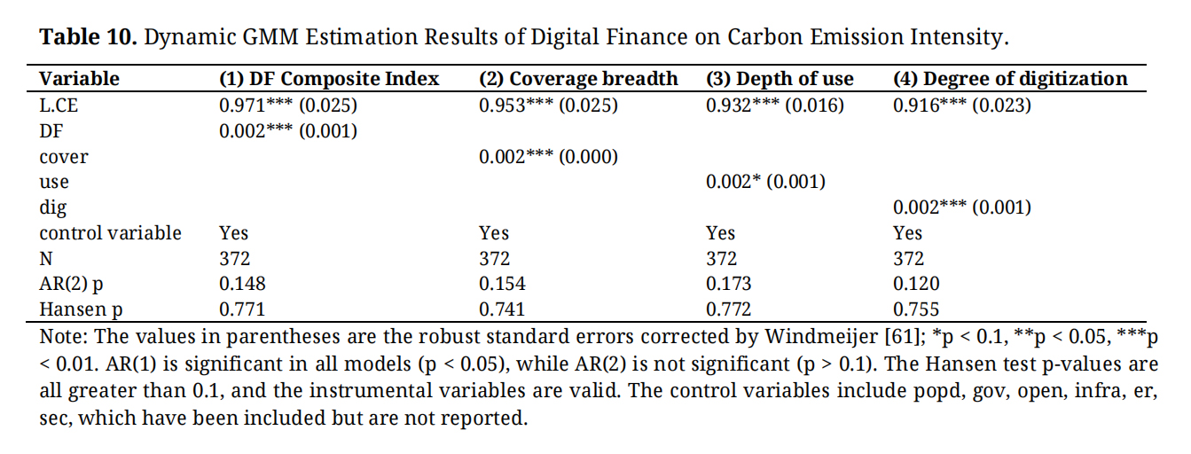 Overall, this study contributes to the literature by clarifying the multidimensional environmental effects of digital finance and identifying its underlying transmission mechanisms and regional contingencies. The findings provide important policy implications for designing differentiated financial strategies that leverage digital financial innovation to accelerate the low-carbon transition.