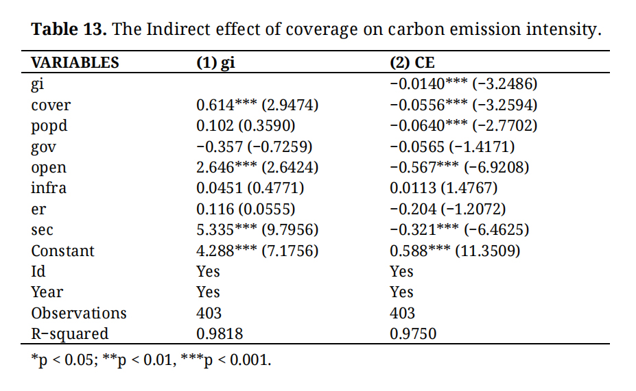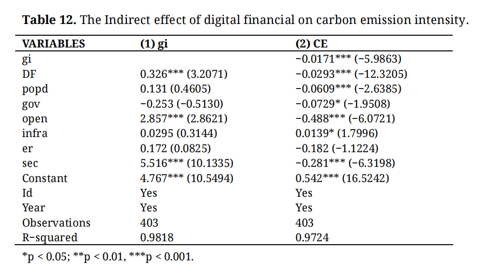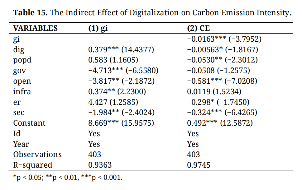 Table 15. The Indirect Effect of Digitalization on Carbon Emission Intensity.