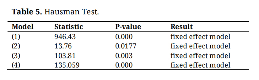 This study employs panel data regression models to examine the relationships among carbon emission intensity (CEI), digital finance (DF), green technology innovation (GTI), traditional financial support (TFS), and control variables. Model selection is determined using the Hausman test. Fixed effects are applied when regressors correlate with error terms; otherwise, random effects are used. The fixed-effects model controls for unobserved regional and temporal heterogeneity.